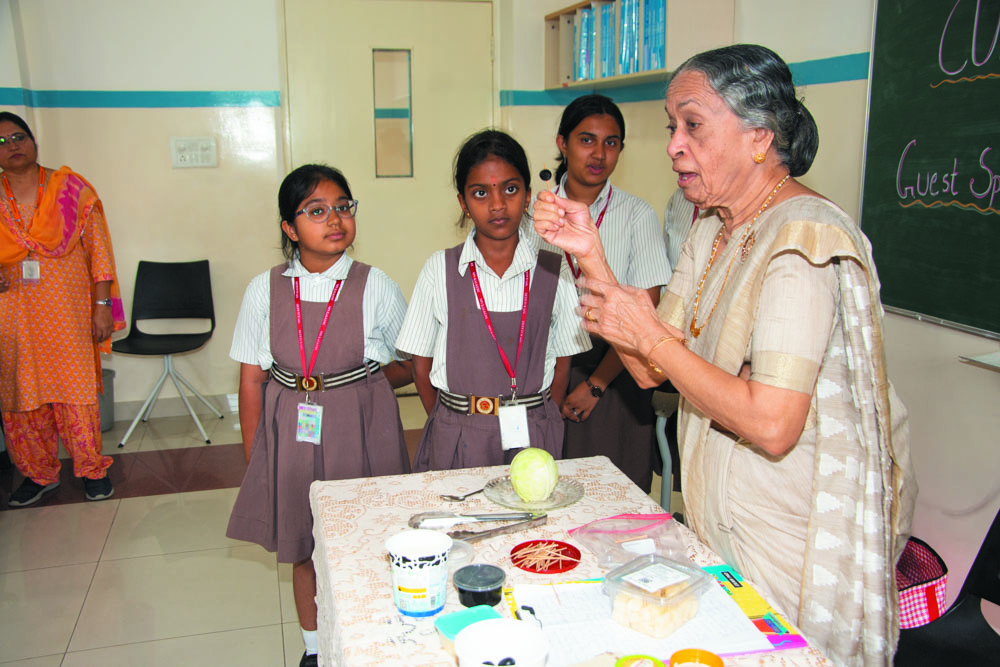 In her address, Ms. Babu described cooking as an art that combines creativity, imagination, and care to bring joy and nourishment. She demonstrated a variety of innovative dishes, including pasta with homemade mayonnaise, cucumber cups, a cabbage-based presentation, and an orange platter—each highlighting that healthy food can be both nutritious and delicious without preservatives.