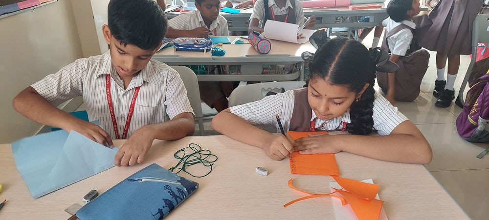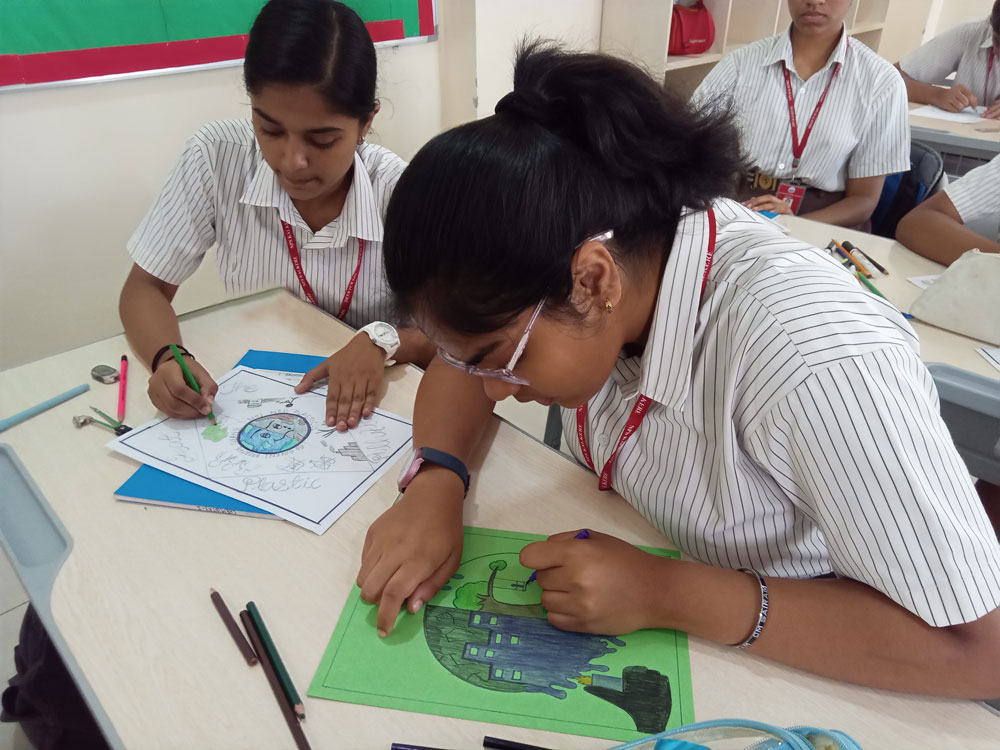 Taking it forward, on Monday 5th June 2023, students of all grades participated in an array of events on the school campus, viz: Student talk in the morning assembly, making of cards, badges and envelopes, newspaper bags, Doodle Art about saving marine life and poster making. The pin-up boards in the school displayed the mission of the students to Save today for tomorrow!
