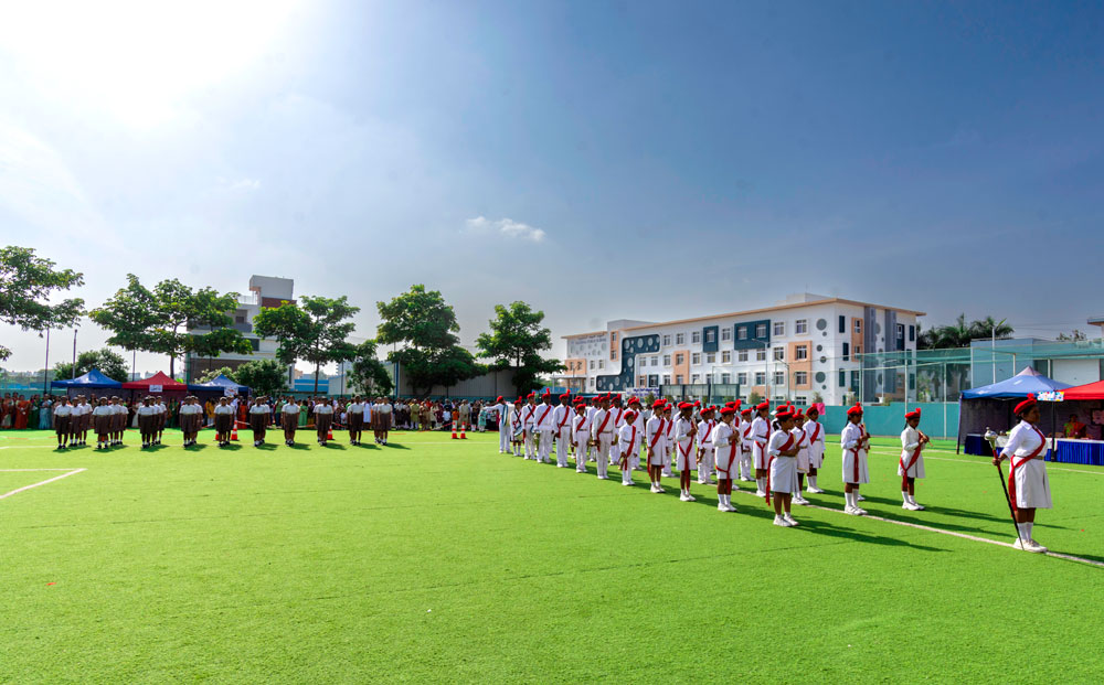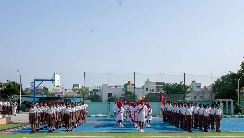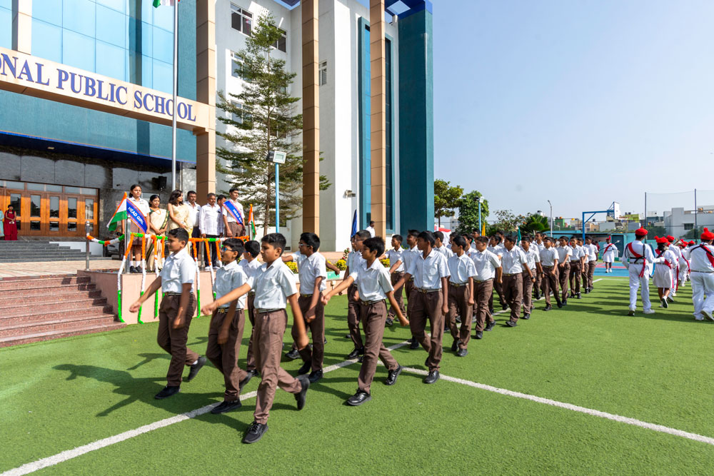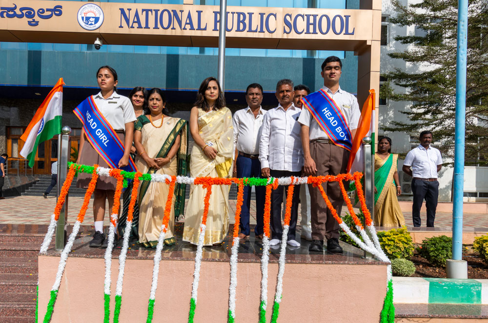 On Tuesday,15th August 2023, National Public School, Kalkere, celebrated Independence Day. The school campus was beautifully decorated in national colours of orange, green, blue and white-with flags and flowers to commemorate the special day. The programme commenced with our Principal Ms Shyla Purushotham, hoisting the national flag followed by the singing of the national anthem by the august gathering. There was an impressive march past and band display by the students of the Band Club. No doubt the ambience was filled with boundless enthusiasm and patriotic fervour. Our chief guest for the occasion was Ms Roopali Rawat, who believes that standing in front of a start line in a race brings the opportunity to succeed. She is the founder of Fab Point and excels in upcycling pre-loved sarees.
