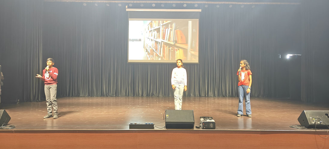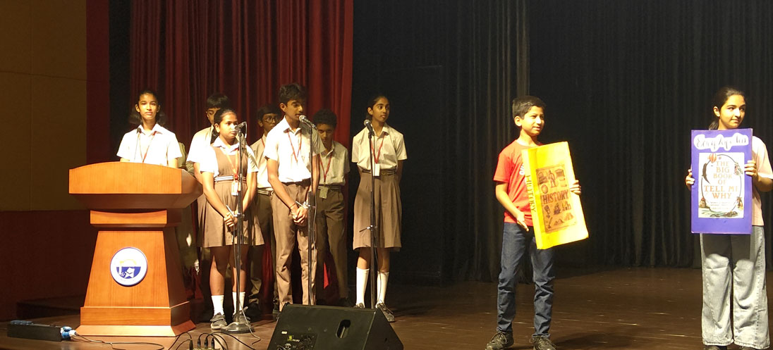 The program opened with a cheerful welcome speech, reminding everyone that every book is a doorway waiting to be unlocked. Students of Classes 5–7 then brought the stage alive with a lively conversation on the importance of reading, showing how stories can be both friends