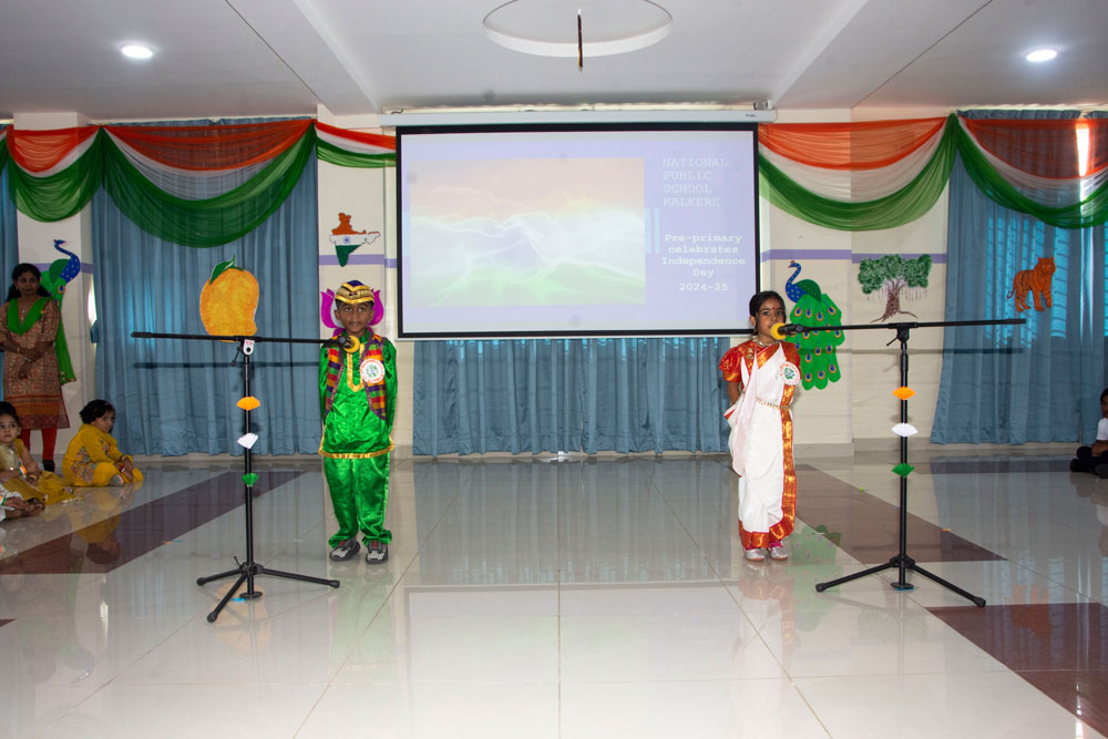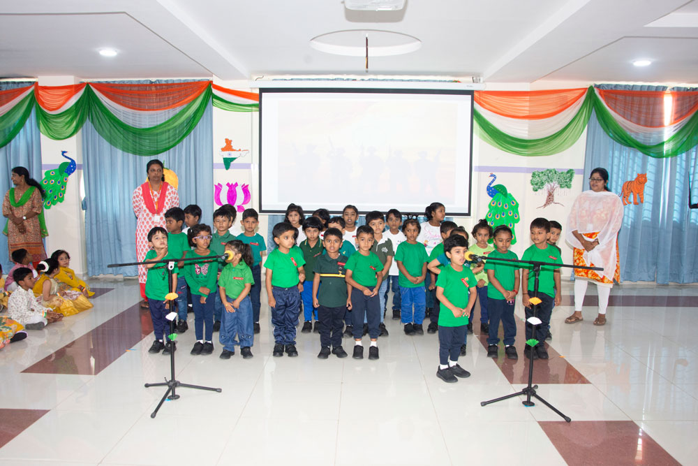 On 13th August 2024, the students of Pre Primary were all dressed in tricolor and assembled in the multipurpose hall to entertain the audience.