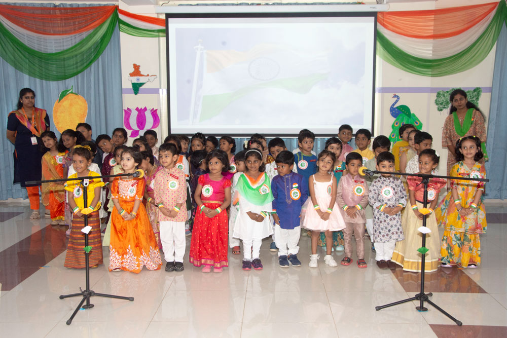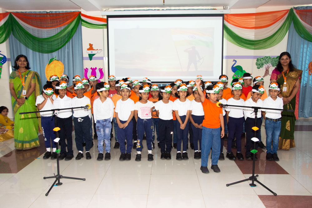 The programme started with a welcome note by the student and a teacher who explained the meaning of Independence and remembered the heroes who sacrificed their lives for our country. It was followed by patriotic songs in different languages sung by all the classes. The atmosphere was filled with patriotism and a sense of awareness towards our country. It was a proud moment for all the participants and the teachers.
