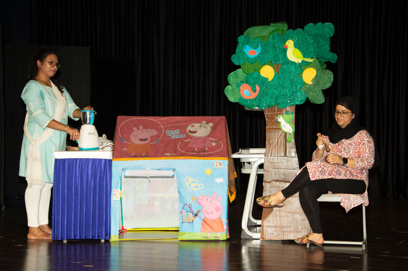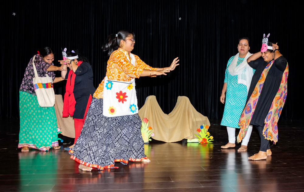 teaching faculty of the Primary Section curated a story telling session. The teachers adorned the role of different characters and small animals, motivating the children of classes 1-3 to share their ability to be happy, sad, angry, funny or grateful. The objective was to inculcate and develop the right attitude and right perspective through a play way method. The narrative had elements of surprise, suspense, laughter and fun dialogues. For the students, the takeaway was to acknowledge and be thankful for the blessings that already exist.