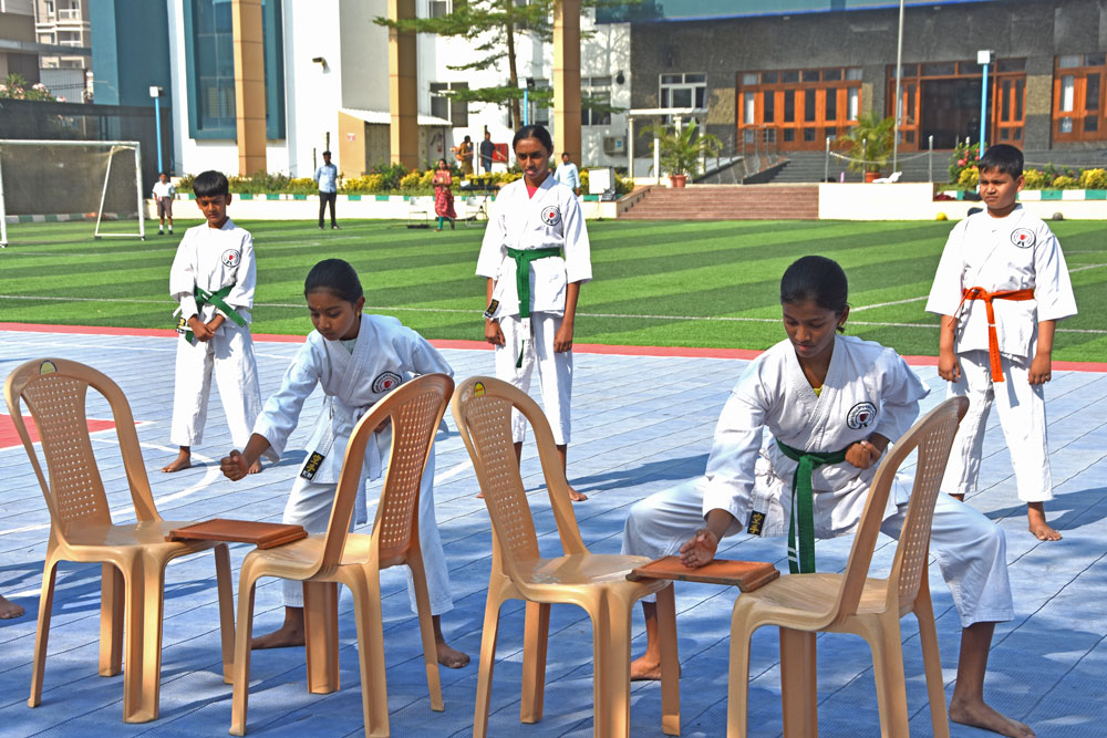 including Basketball, Football, Karate, and Instrumental Music. The culminating programme attended by the proud parents of all the participants commenced with a warm welcome address by the school Principal. Each team showcased their learning through impressive,