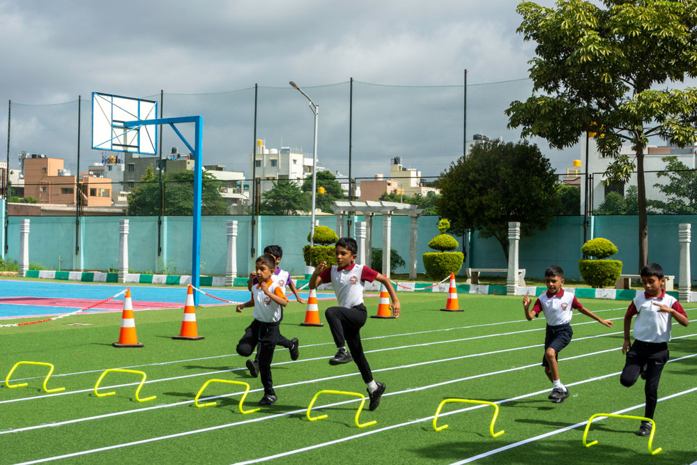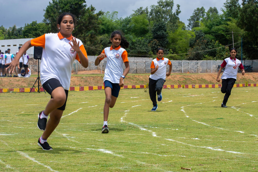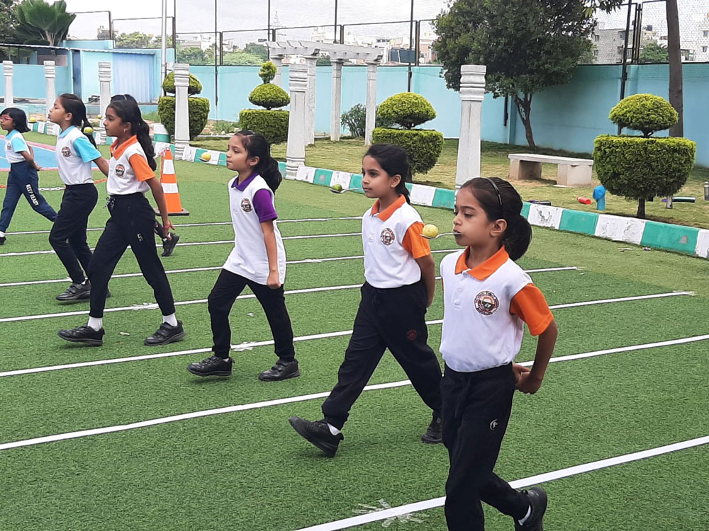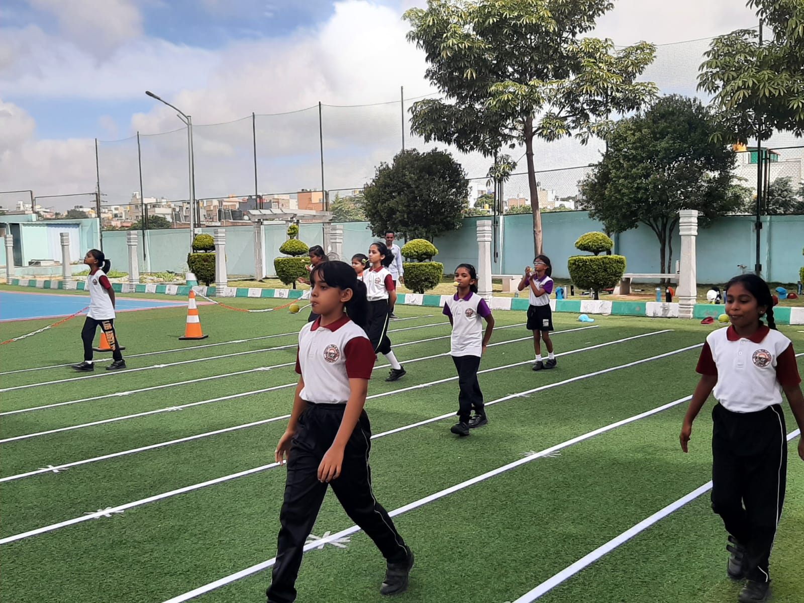 The Track and Field Events were held at National Public School, Kalkere on Friday, 8th September 2023 for Grades 5-12, Tuesday 12th September for Grades 1& 2 and Wednesday 13th September for Grades 3 & 4. This typically involved athletic contests based on running, jumping and throwing skills. The exposure to extensive physical activities- some intense some moderately intense, encouraged the students to break down the limiting walls. The students of grades 5 to 12, in batches, participated and competed in events, viz: races of 100mts, 200mts and 400 mts; Relay, Standing Broad Jump, and Shot put. The students of Grades 1 to 4 participated in the 60-meter race, obstacle race, lemon spoon race and very interesting circuit races. The points accrued were added to the House score. The competitive spirit was high and everyone gave their best to ensure their team/House emerged victorious. There were No benches, No Half Time, No Time-outs-it was a testament to the importance of physical fitness and sportsmanship spirt on a multi-dimensional domain.