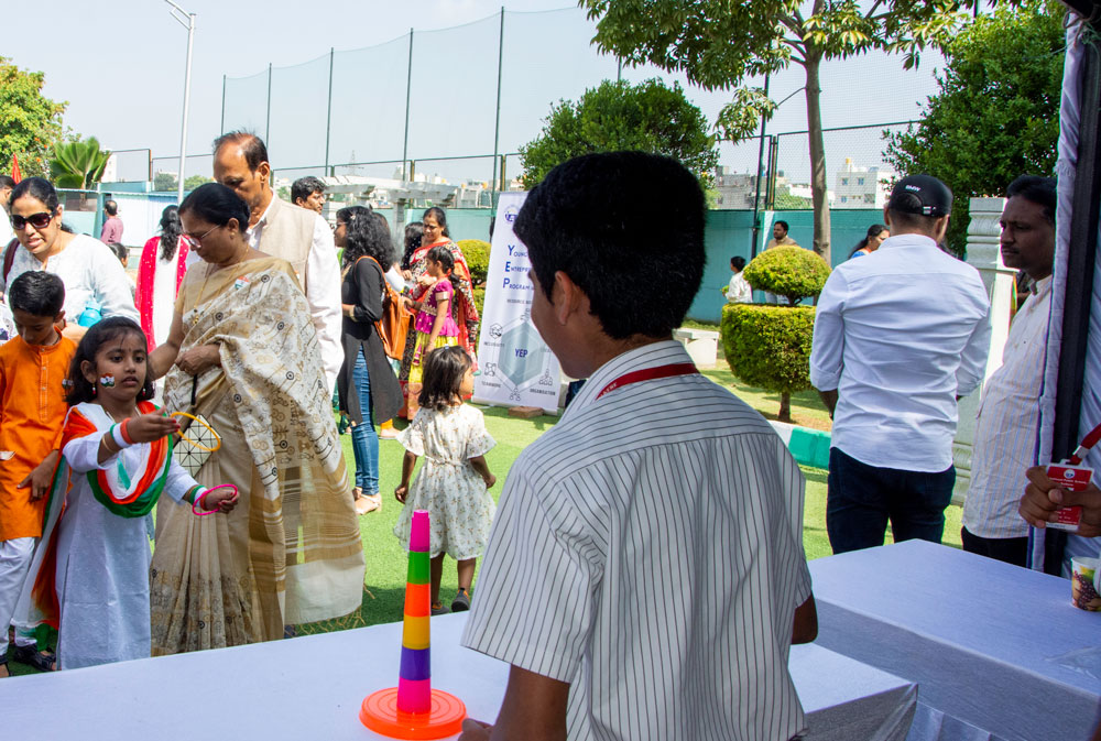 On Tuesday,15th August 2023, at National Public School, Kalkere, students of class 9 curated a commerce venture- the Young Entrepreneurs Programme 2023, focussing on entrepreneurial thinking and development through practical experience. Soon after the Independence Day programme, YEP was declared open by the chief guest, Ms Roopali Rawat- an entrepreneur with a passion for sustainability and recycling of old fabrics. From practical strategies and creative exercises, the project started with ideation, pitching for capital funds, manufacturing, advertising/ marketing and then subsequently, selling their products in the stalls erected on the campus of the school. The profit generated thus will be directed towards charity- which in fact is the objective of the enterprise. Every minute of the programme was illustrative of in-depth learning, robust communication and energetic teamwork. Visitors comprising of parents of students from classes 3-12 and alumni, thronged the stalls of food, games and various kinds of handicrafts. Replete with music, festoons, and flash mob performances, the day ended on a hugely successful and cheerful note.
